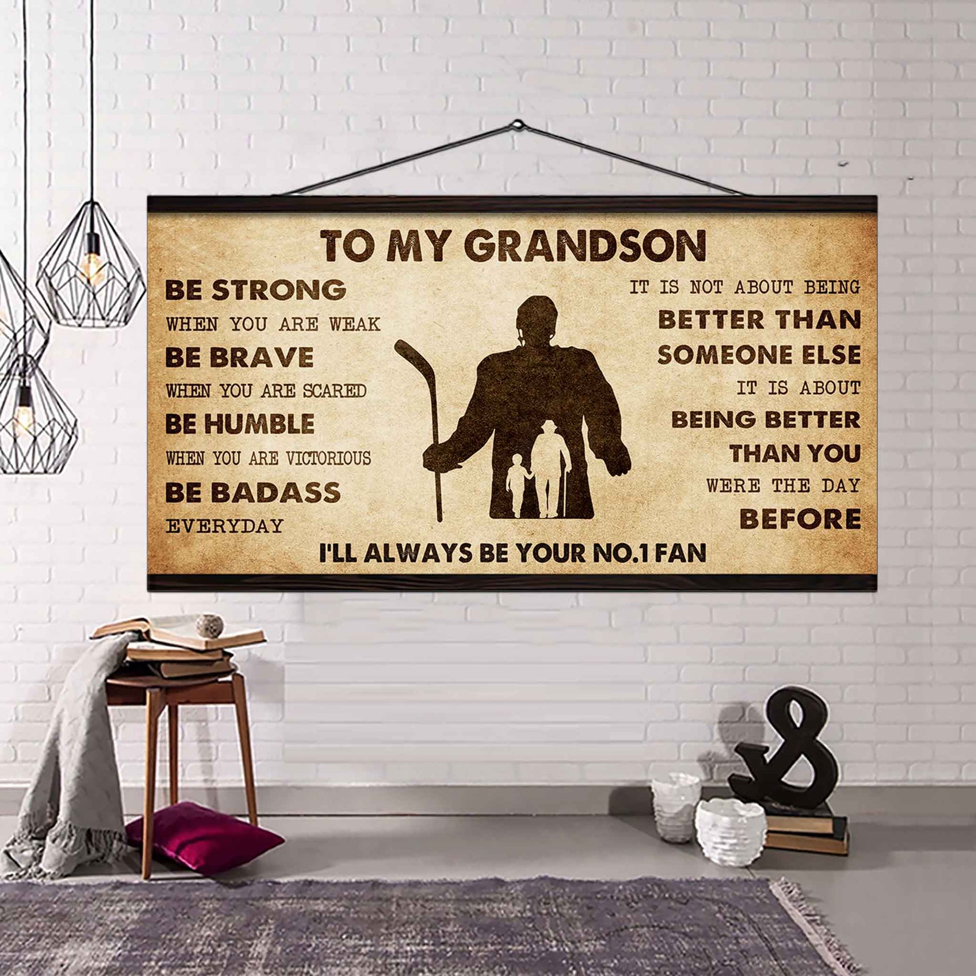 Personalized Sport Baseball Poster Canvas I'll Be Your No 1 Fan Grandpa To Grandson - Be Strong When You Are Weak Be Badass Everyday