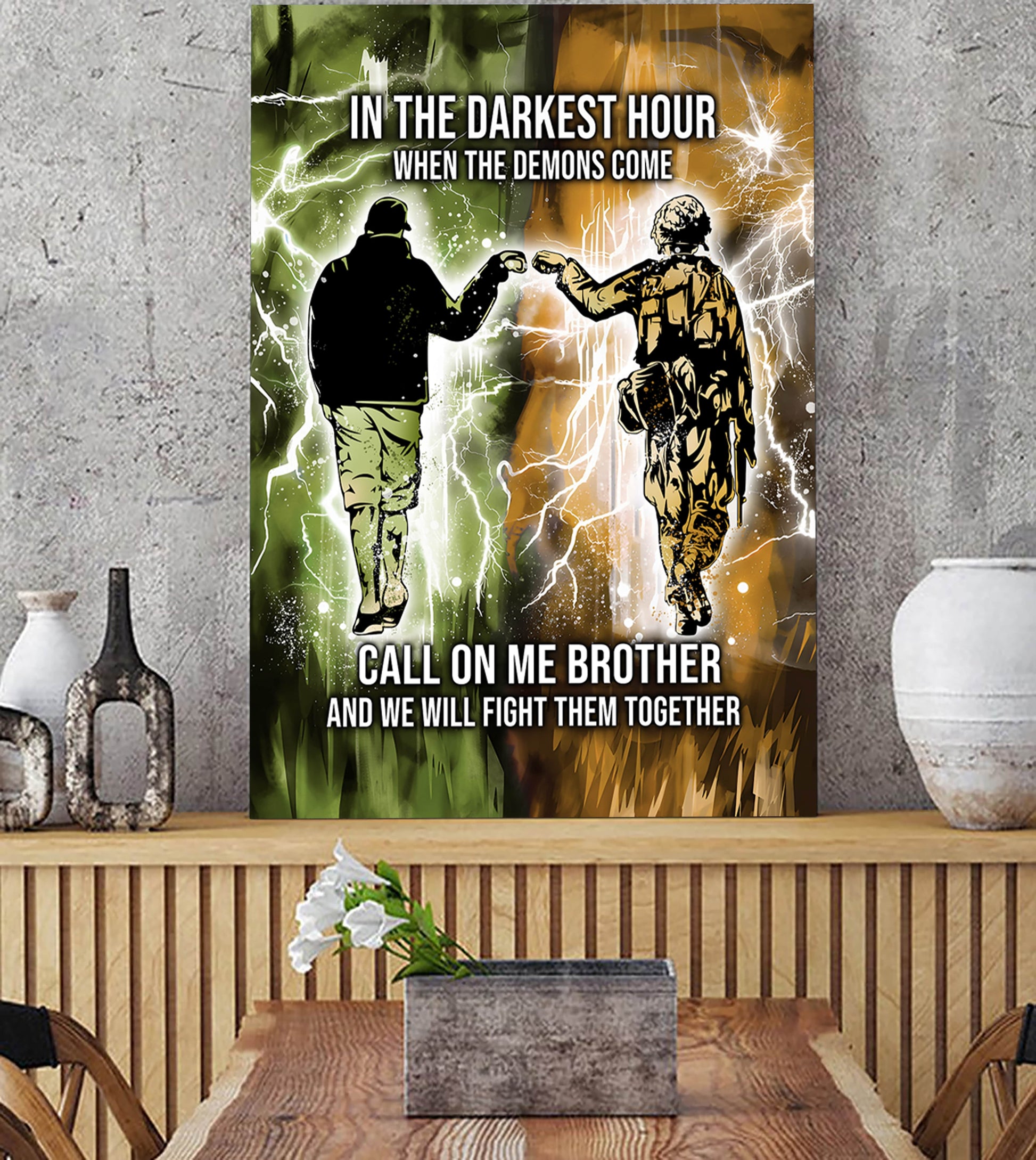 NOTICE: This is a more casual and often more artistic style of canvas presentation. A hanging canvas typically consists of a canvas fabric sheet with two wooden bars attached at the top and bottom. The top bar includes a hanging mechanism, usually a string or a cord, for easy display. This style allows the canvas to hang freely against the wall, giving it a slightly informal, bohemian feel. The canvas in this case can be easily rolled for storage or transport.
