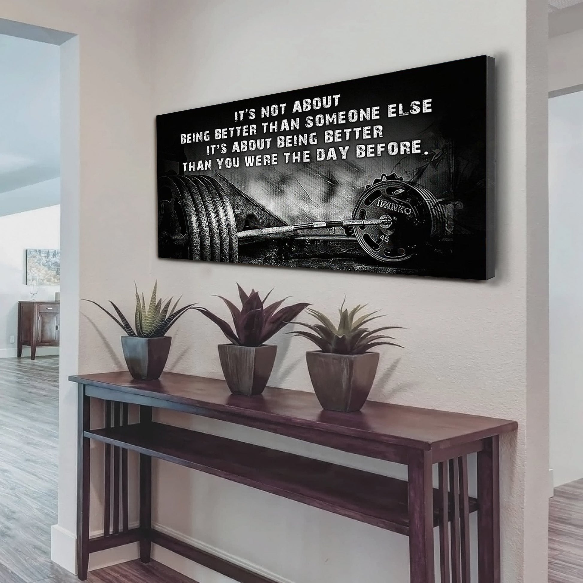 NOTICE: This is a more casual and often more artistic style of canvas presentation. A hanging canvas typically consists of a canvas fabric sheet with two wooden bars attached at the top and bottom. The top bar includes a hanging mechanism, usually a string or a cord, for easy display. This style allows the canvas to hang freely against the wall, giving it a slightly informal, bohemian feel. The canvas in this case can be easily rolled for storage or transport.