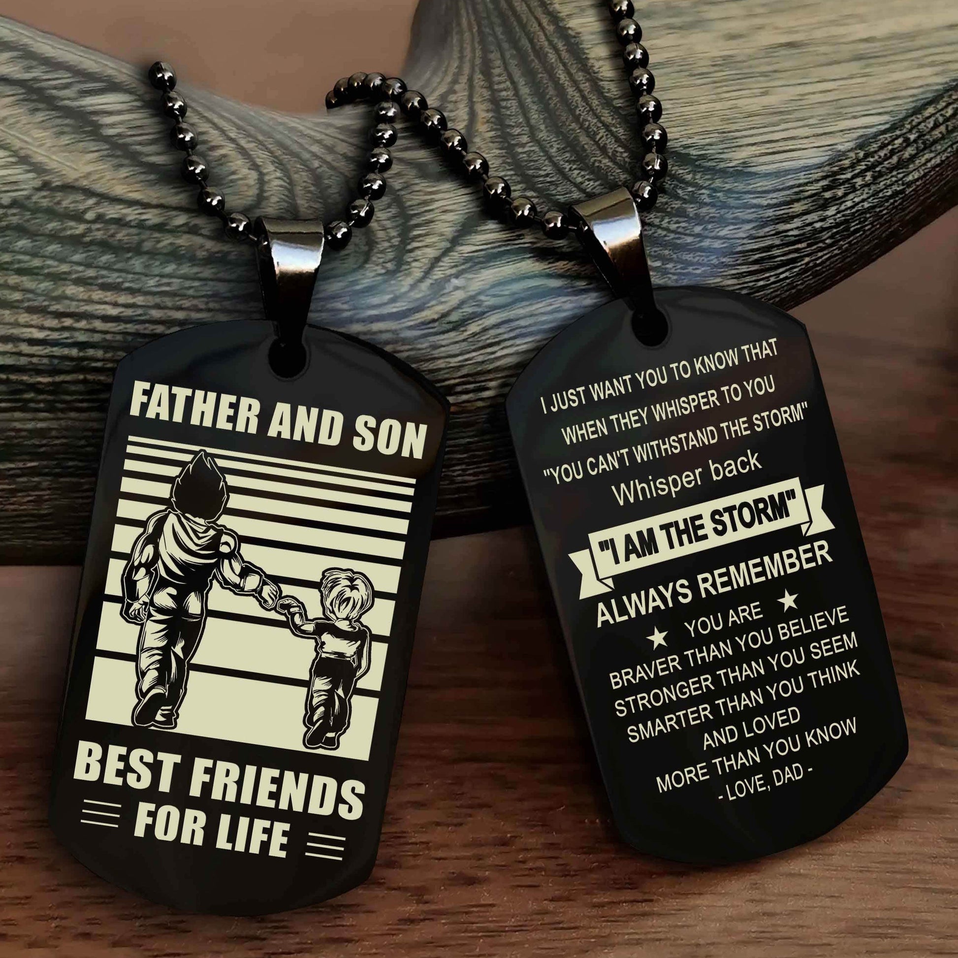 The dog tag contains a meaningful message that a father wants to share with his son. It is a perfect gift for birthdays, anniversaries, or any special occasion.