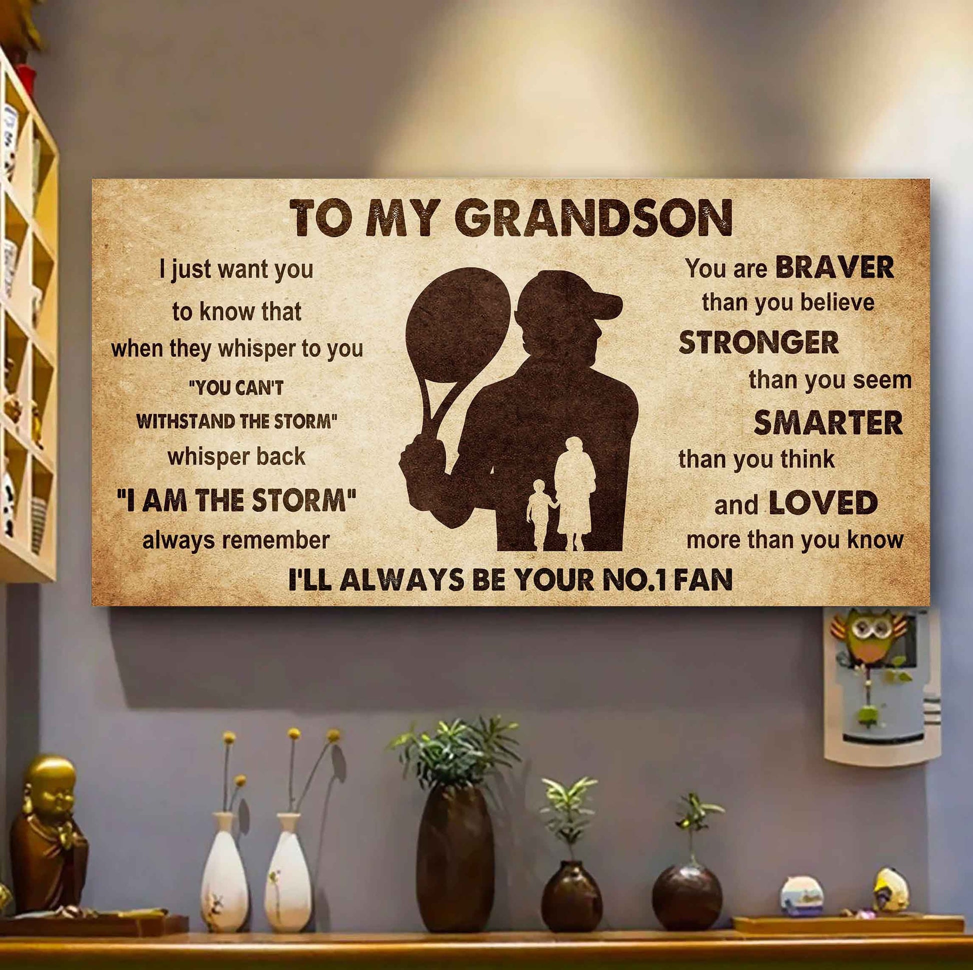 Personalized Sport Baseball Poster Canvas I'll Be Your No 1 Fan Grandma To Grandson - Whisper Back I'm The Storm