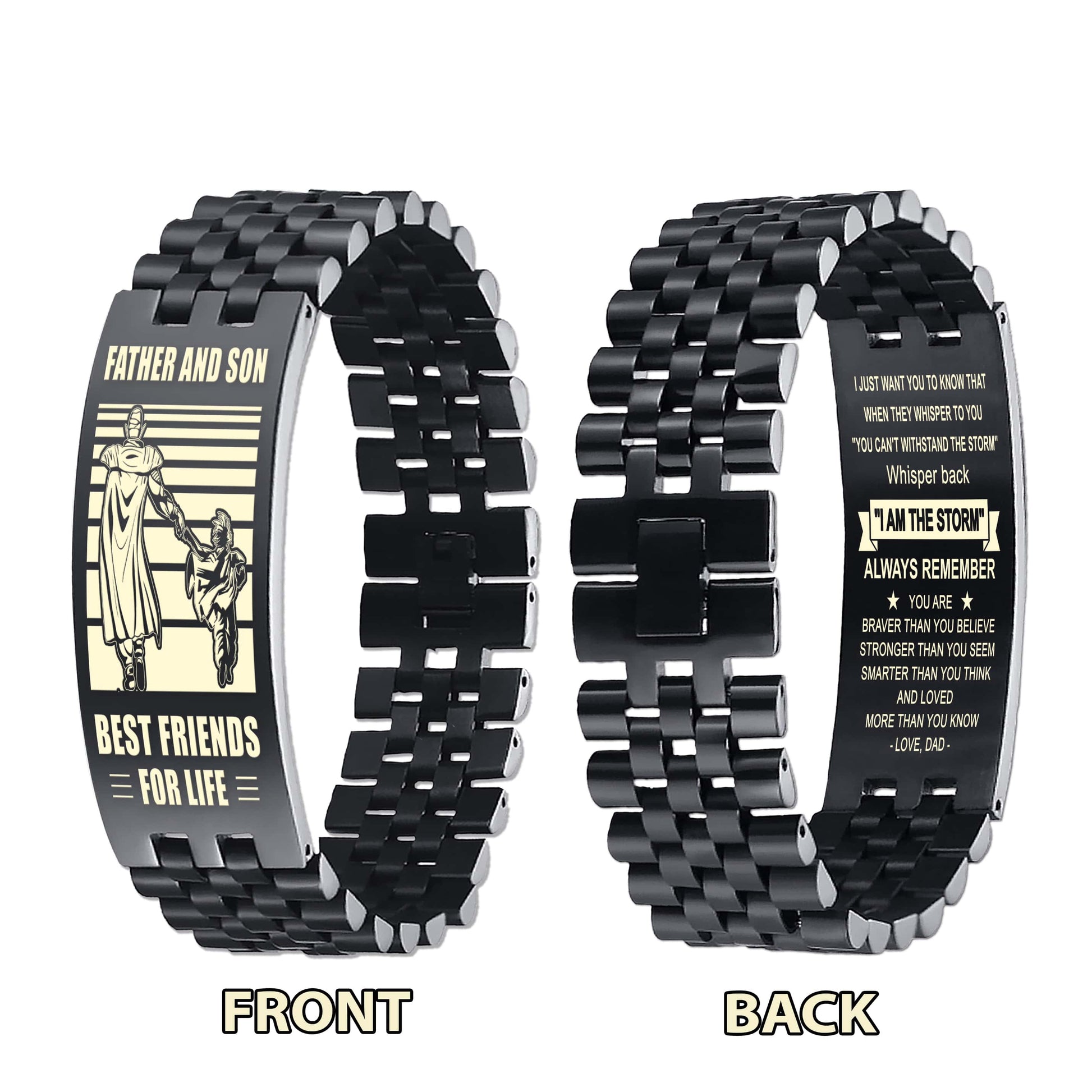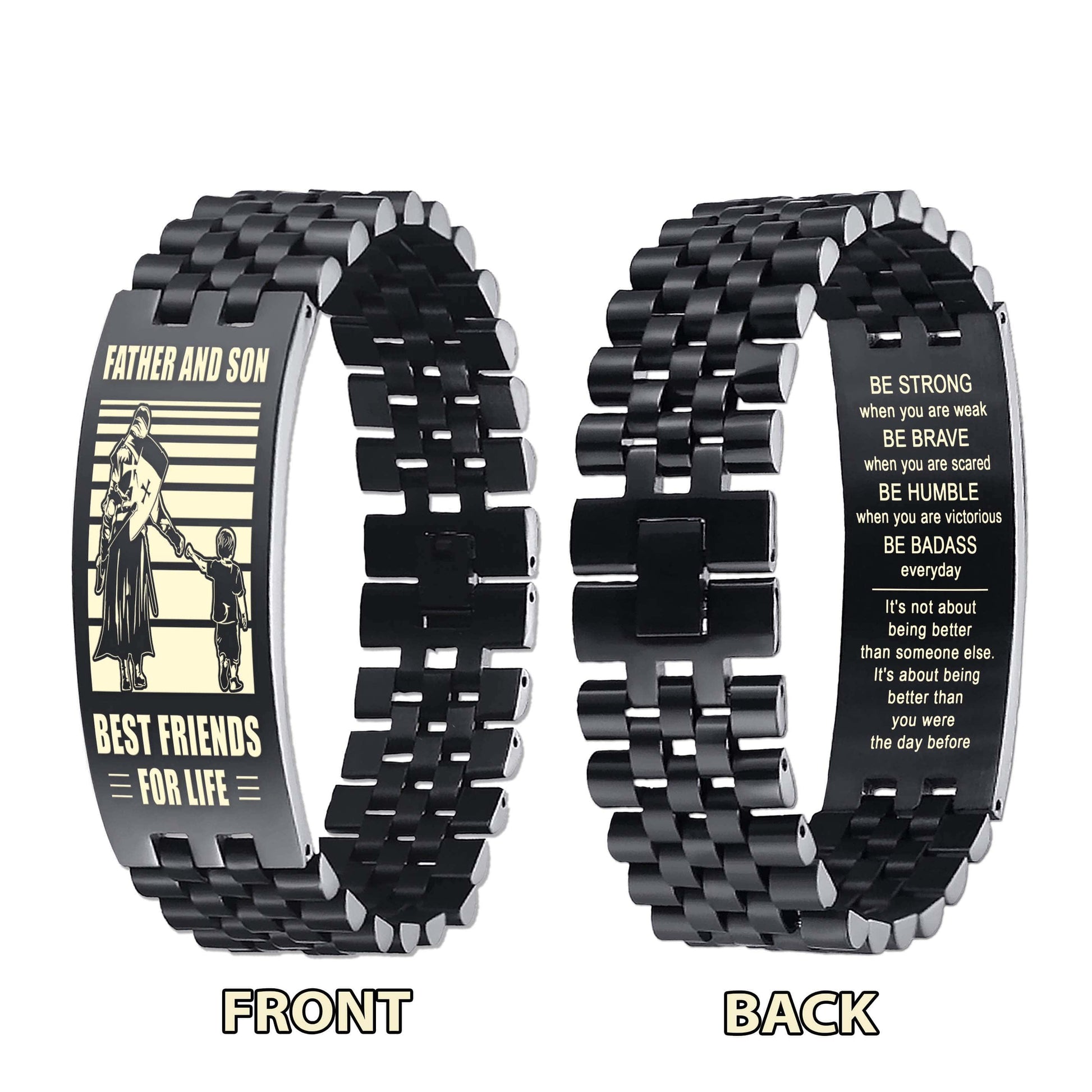 STO Spartan Personalized Double Sided Bracelet Father And Son Best Friends For Life - Message on the back side